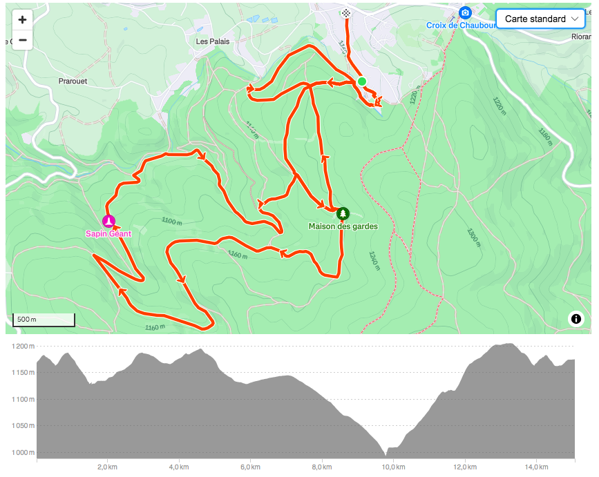 Au 5ème kilomètre débute la descente sur Pont Souvignet, altitude 980 m (voir vidéo 3)